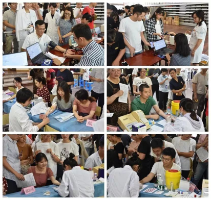 中午时分,献血活动正式开始,前来献血的职工就络绎不绝,工作桌前很快排起了长龙。他们有的刚完成交接班,有的刚查完房过来,有的放弃休息日特意赶来。排队、登记、填表、初筛……很多职工已经连续多次参加无偿献血活动,对一系列流程太熟悉太熟悉了。一位位勇敢的“献血英雄”,脸上洋溢着自豪,绽放着幸福的笑颜,同时也以这样特殊的形式共同献礼属于自己“医师节”。