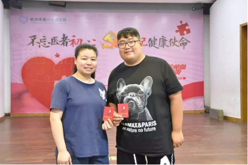 另一对是放射科的吴奕派和黄燕芳夫妻。他们骄傲地说:“我们领的第一张‘红本本’是结婚证,第二张就是‘献血证’啦!”纯真的笑容荡漾在他们脸上,温暖融化在大家的心里。