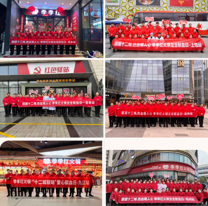 作为江西本土成长起来的全国知名餐饮连锁企业,季季红餐饮自成立以来,始终将“服务社会、回馈社会”作为企业文化的重要组成部分。“春节是万家团圆的时刻,但医院里依然有许多患者需要血液救治。”季季红餐饮相关负责人表示,“我们组织这次活动,一方面是想为保障春节期间的临床用血尽一份绵薄之力;另一方面,也是希望通过我们的行动,能够带动更多的爱心企业和市民朋友加入到无偿献血的队伍中来,共同传递这份温暖和希望。”