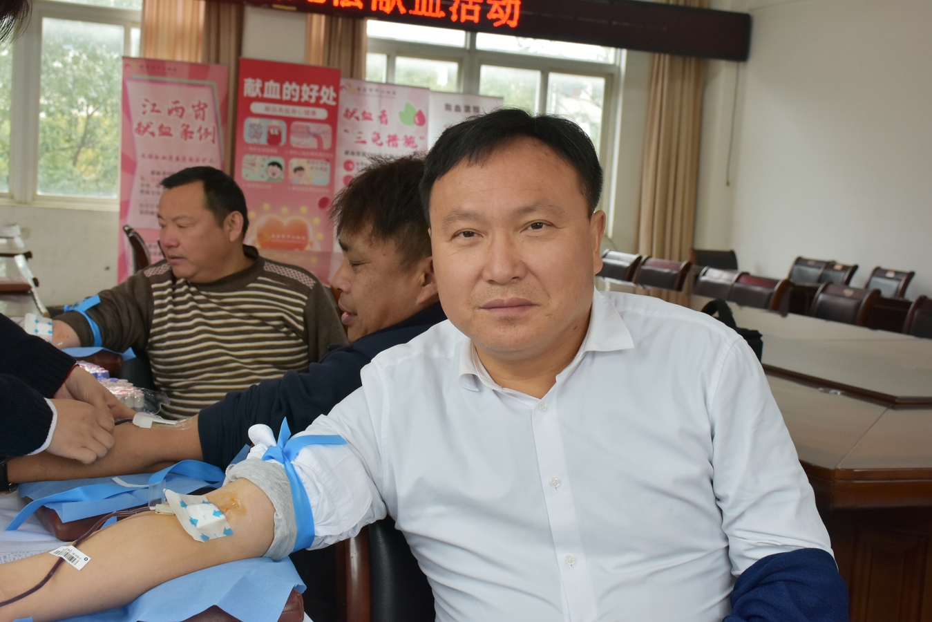 胡小平书记率先垂范,带头献血。他眼神中满是坚定的说道:能在年末用这种方式帮助他人,特别有意义。