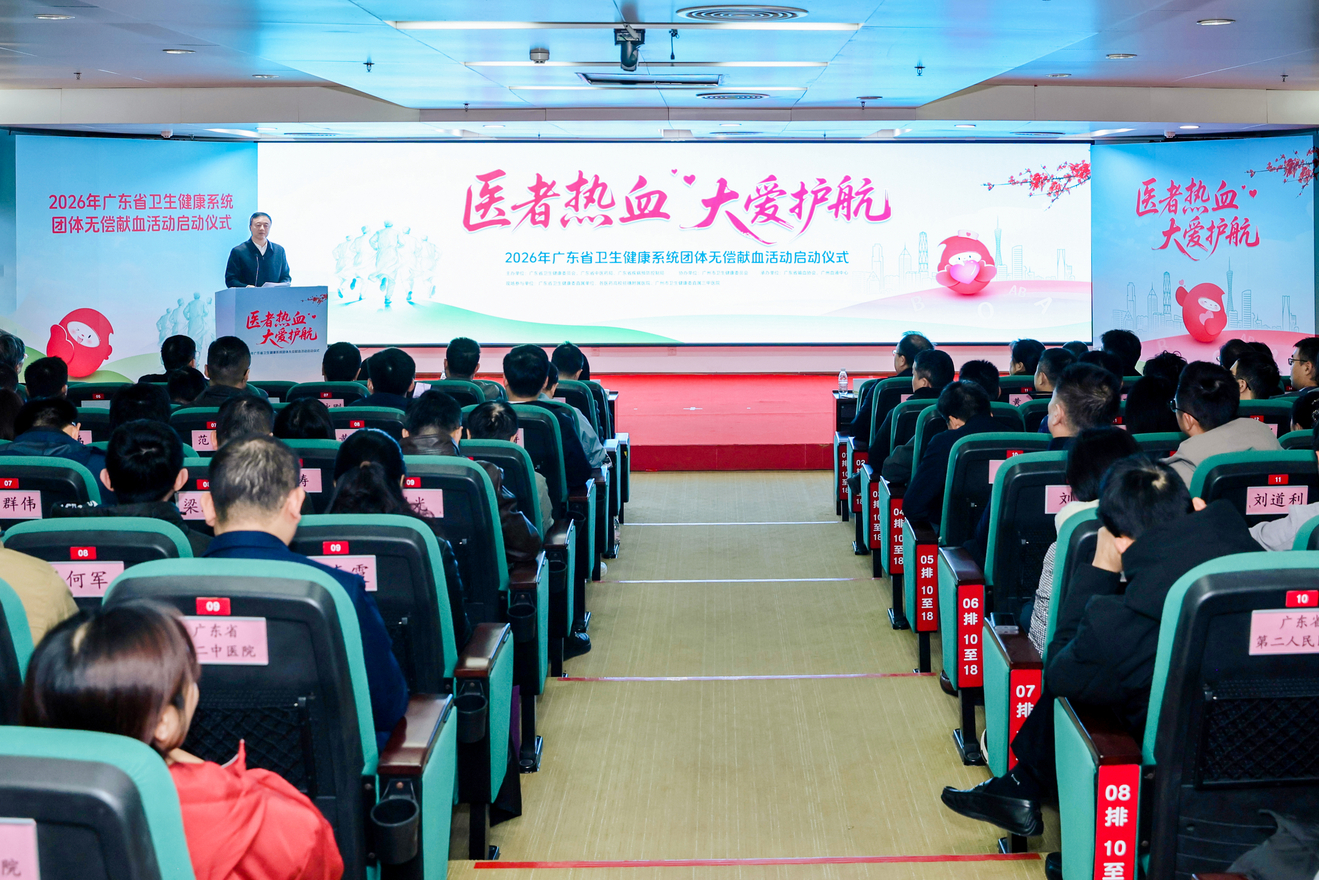 1月22日上午,“医者热血•大爱护航”——2026年广东省卫生健康系统团体无偿献血活动启动仪式在广州血液中心举行。广东省卫生健康委党组书记、主任刘利群,广州市卫生健康委党组书记、主任陈斌等领导出席仪式,省卫生健康委直属单位、各医药高校驻穗附属医院相关领导、市卫生健康委直属三甲医院代表、医务工作者及媒体记者齐聚一堂,以热血践行初心,以奉献守护生命,共同拉开全省卫健系统团体无偿献血活动的序幕。