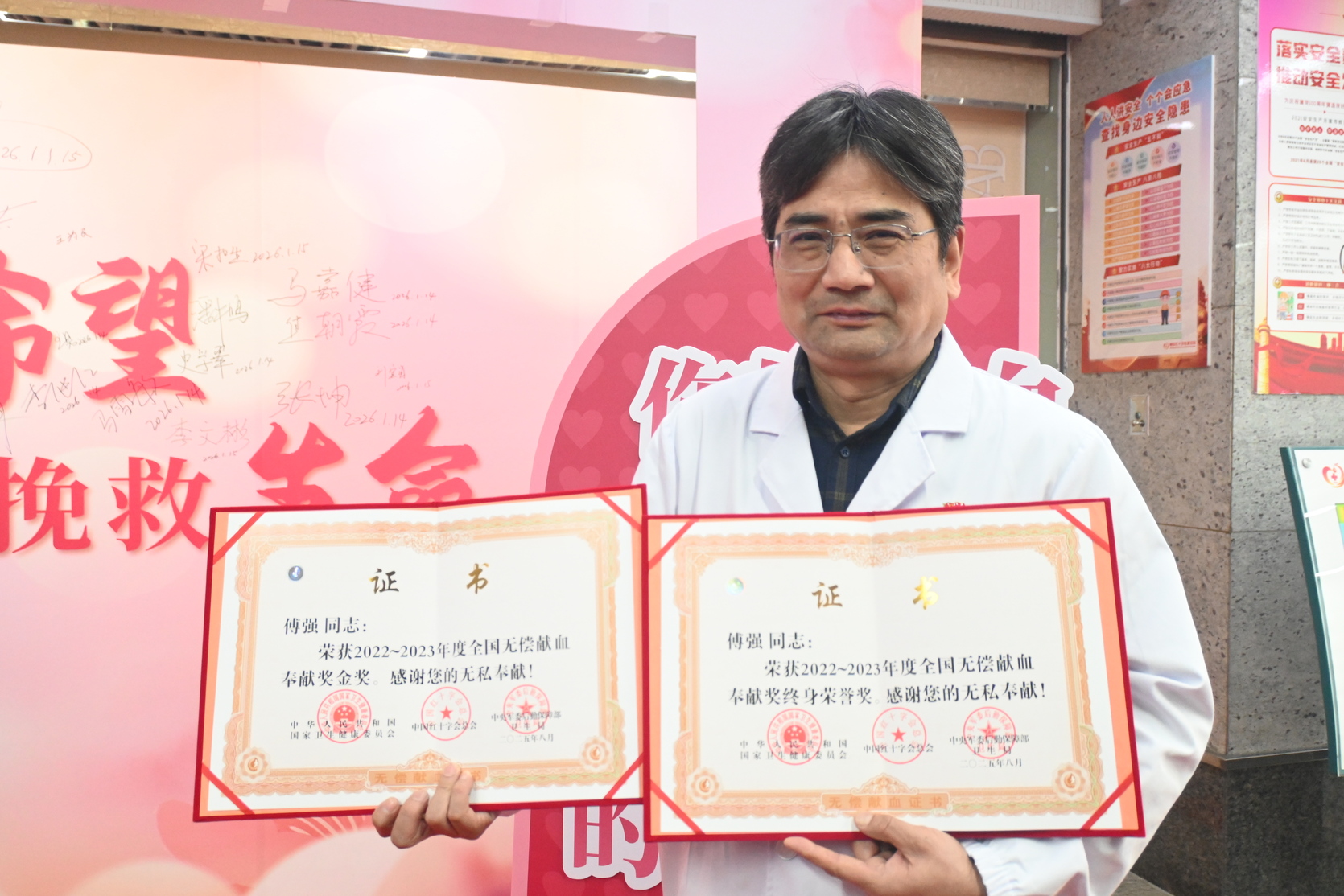 谈及多年献血的心得,傅强的话语朴实而真诚。他表示,献血有严格的间隔规定,无论是全血还是成分血,都必须严格遵守时间、按时参与。为了保持血液始终符合捐献标准,他在饮食、作息、工作与生活习惯上都自律甚严。“只有健康的血液,才能真正帮助需要的人,才更有价值。”这份初心让他坚持不饮酒、保证睡眠,每天快走一小时,在自律中守护这份珍贵的“生命礼物”。“无偿献血不仅无害健康,反而促使我保持健康的生活方式,而健康的身体又支持我持续奉献——这是一个美好的循环。”正是这份通透的认知,成为他二十余年不曾间断的动力。