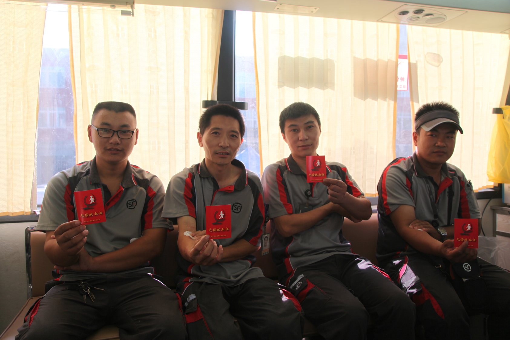 顺丰小哥献血后合影留念