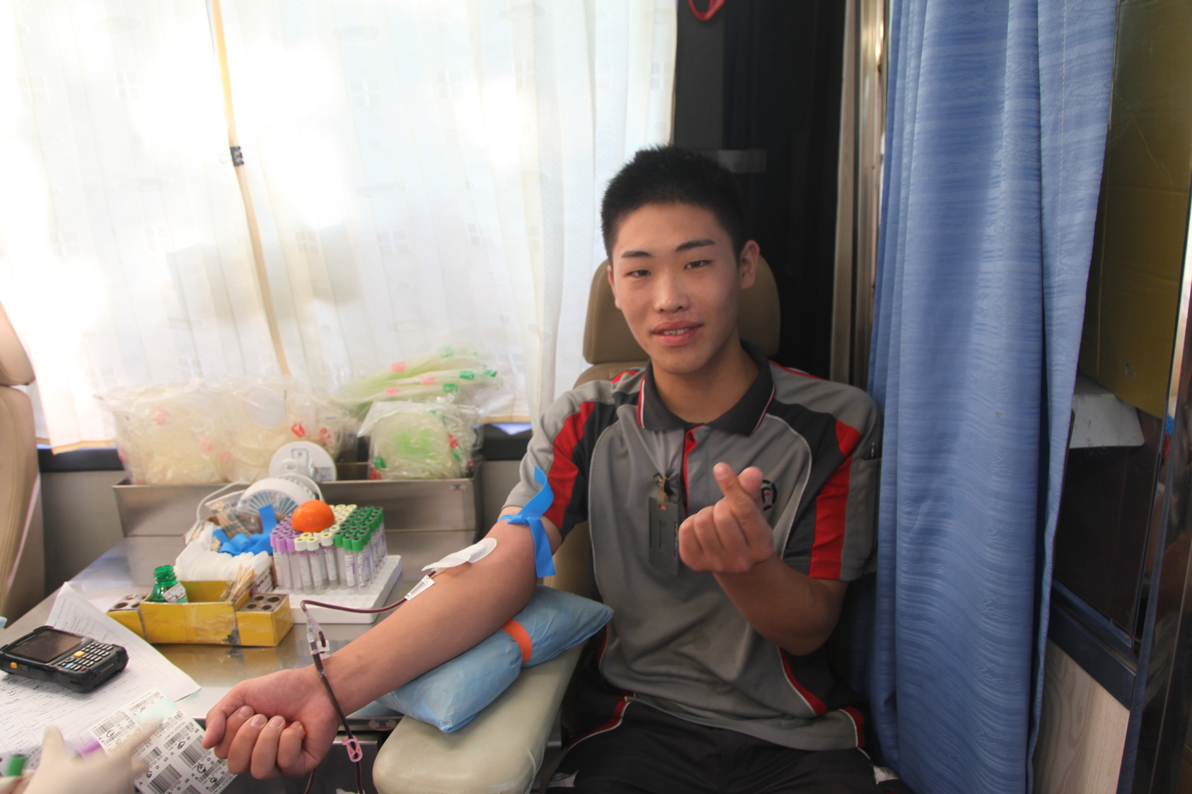 顺丰小哥们纷纷表示,作为参加无偿献血活动,是想尽自己一份微薄之力帮助他人、服务社会,发扬小蜜蜂精神,感召更多的人加入无偿献血行列,让爱心得到延续传承。顺丰方片区经理和重货王刚经理则表示,今后也将继续积极组织参与公益事业,传递正能量。随着殷红的鲜血带着体温,缓缓流入透明的储血袋,温情在悄然输送,爱心在无声传递。