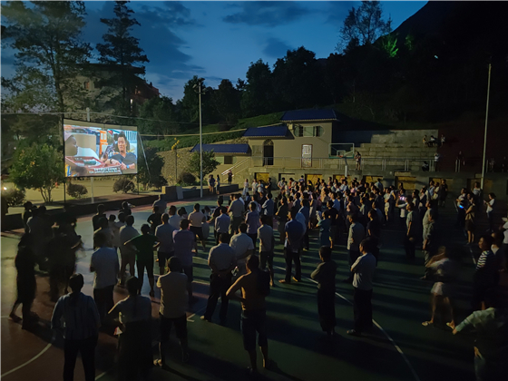 通讯员(李智宏 刘高敏)8月20日,夜幕降临,郴州宜章瑶岗仙镇花果山公园运动场一侧的电影放映机按时启动,数百人或站或坐享受着今晚的文化大餐。