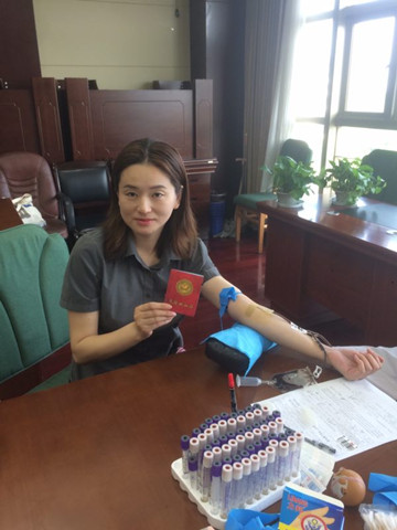 石慧,今天第六次献血,累计献血1千多毫升,她说:献血利人利己,这些年已经养成习惯啦!希望自己的血液能够挽救更多生命。