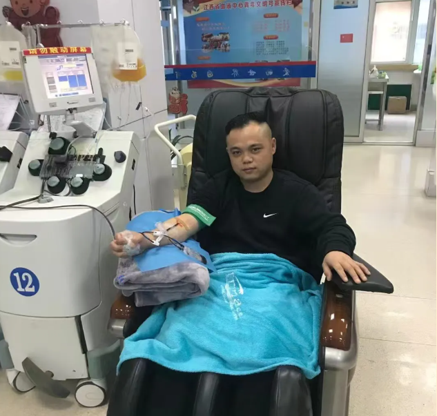 从那以后,献血成了吴源正生活里雷打不动的“习惯”。起初,他捐献了11次全血,直到2019年12月,吴源正的父亲因造血干细胞移植重获新生的经历后,他渐渐了解到血小板(成分血)在临床上用血的需求迫切性与重要性,成分血相当于许多患者的“生命核心”。于是,他毫不犹豫地转为捐献成分血,只为多一次献血,就能多帮助一个人。