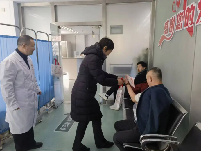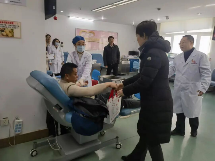 在采血大厅,几位正在献血的市民成为了慰问活动的焦点。朱卫副主任和丁志宏处长亲切询问他们的献血感受和身体状况。“您这是第几次献血了?”朱卫副主任关心地询问一位正在献血的市民。得知这位市民已坚持献血多年,她表示感谢:“正是因为有了像您这样有爱心的市民持续参与,我们城市的血液供应才能得到保障。”