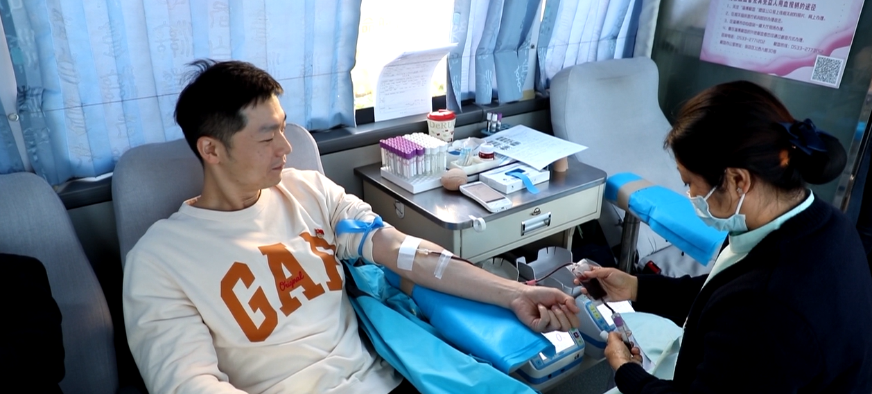 献血者王龙飞,是张店区融媒体中心的记者,他与无偿献血的缘分,始于一次学雷锋纪念日的采访现场。当时,他在现场采访,深受感染,采访结束后便径直走向献血车,完成了自己的第一次无偿献血。从那以后,献血对他来说,就成了一件神圣而光荣的事。