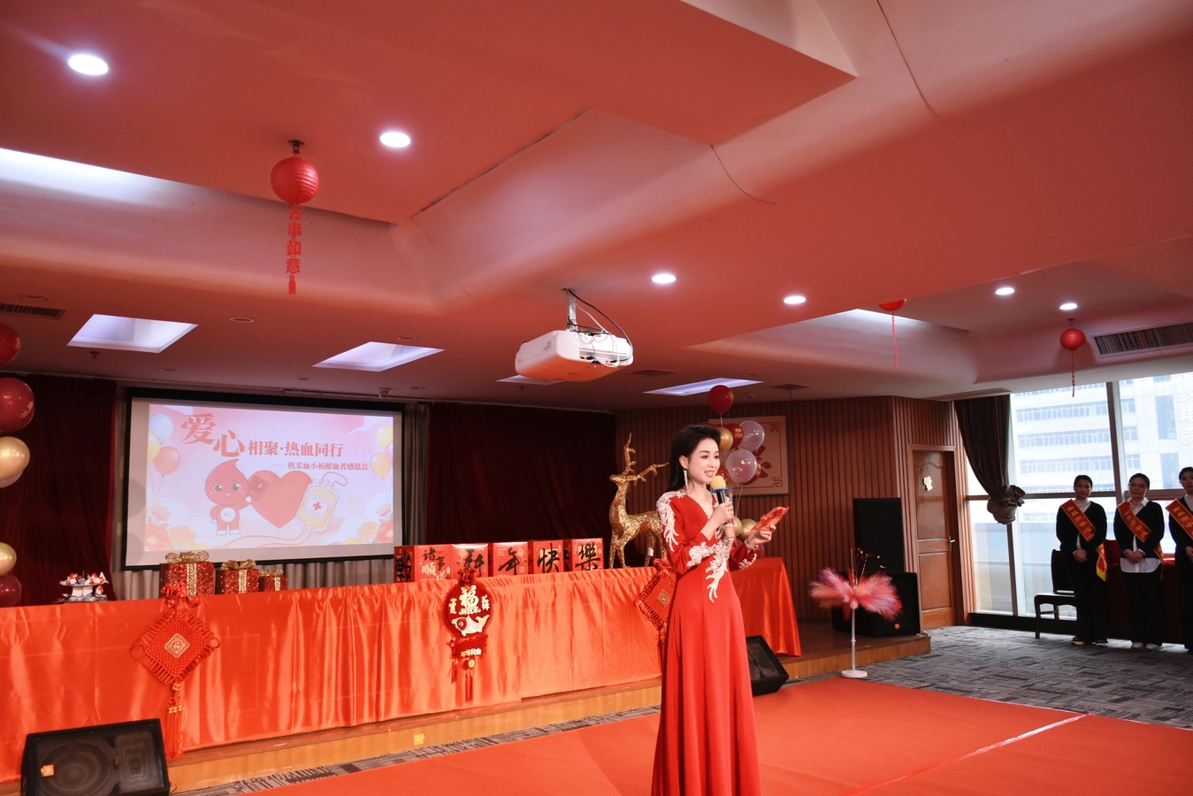 活动主持人是来自血站机采科的邓乔,她首先向到场的所有献血者代表致以热烈的欢迎,并致敬每一位默默奉献的献血者,感谢他们用热血为临床危重患者点燃生命希望,让现场氛围迅速升温。