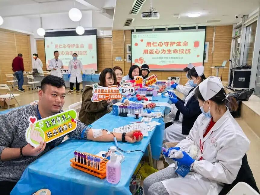血液是生命的源泉,是临床救治中不可替代的宝贵资源;医者是生命的守护者,更是爱心与责任的践行者。在2026年新春佳节来临之际,为缓解节前临床用血紧张态势,保障急诊抢救、手术治疗等关键医疗需求,守护群众生命健康,贵州医科大学附属医院于2月9—13日,组织开展“用仁心守护生命,用爱心为生命续航”医务人员无偿献血活动,以白衣之力传递温暖,用汩汩热血为生命续航。