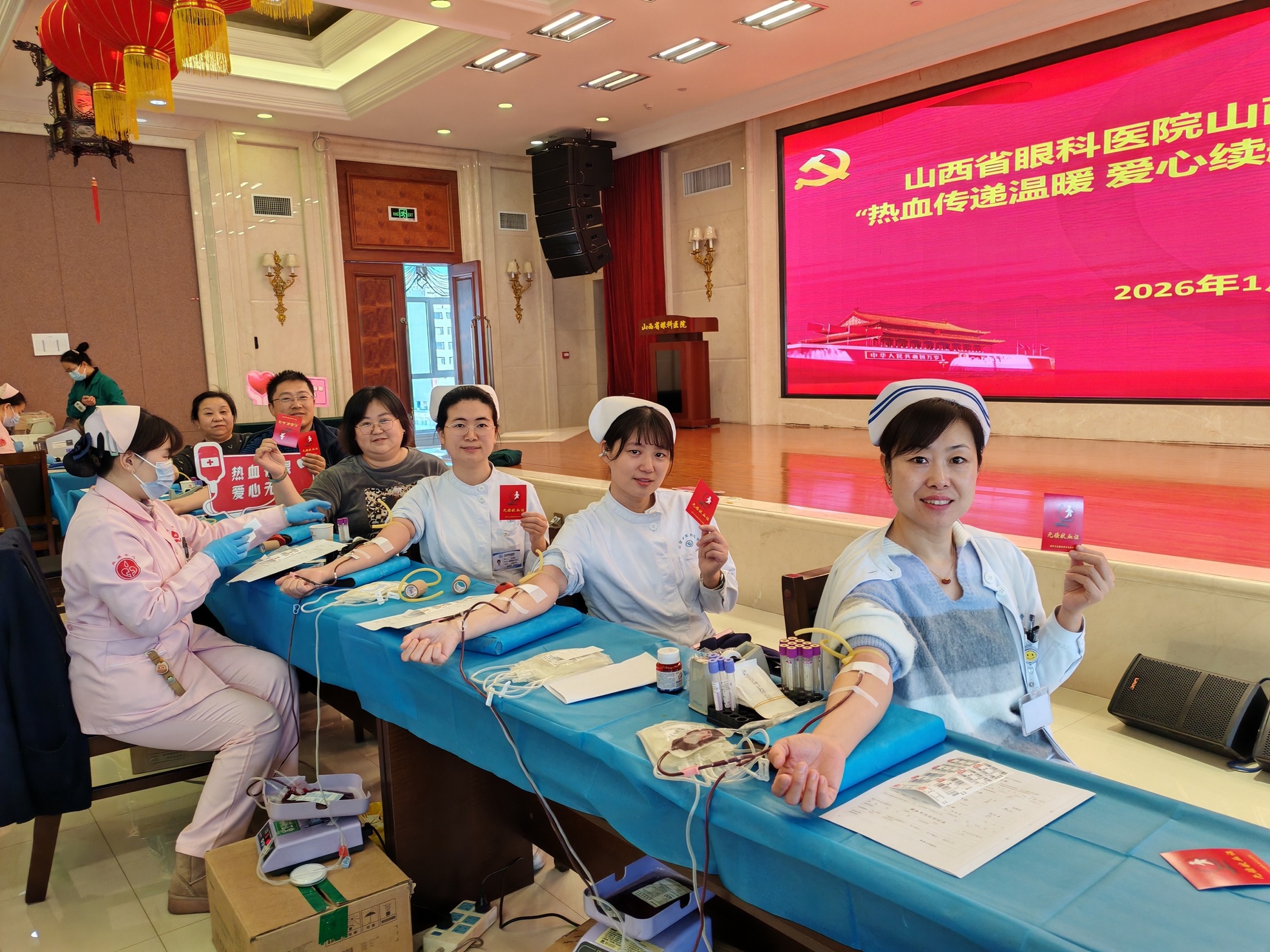 每年1月是太原市无偿献血宣传月。2026年1月20日,山西省眼科医院积极响应号召,于新年伊始率先组织开展“热血传递温暖,爱心续航生命”无偿献血活动,成为2026年首家组织集体无偿献血的省级医院。医务人员带头献血这一行动,不仅缓解了季节性用血压力,为保障临床用血贡献了力量,更彰显了医疗机构在履行社会责任、传递公益理念方面的核心价值和医务工作者崇高的社会责任感。