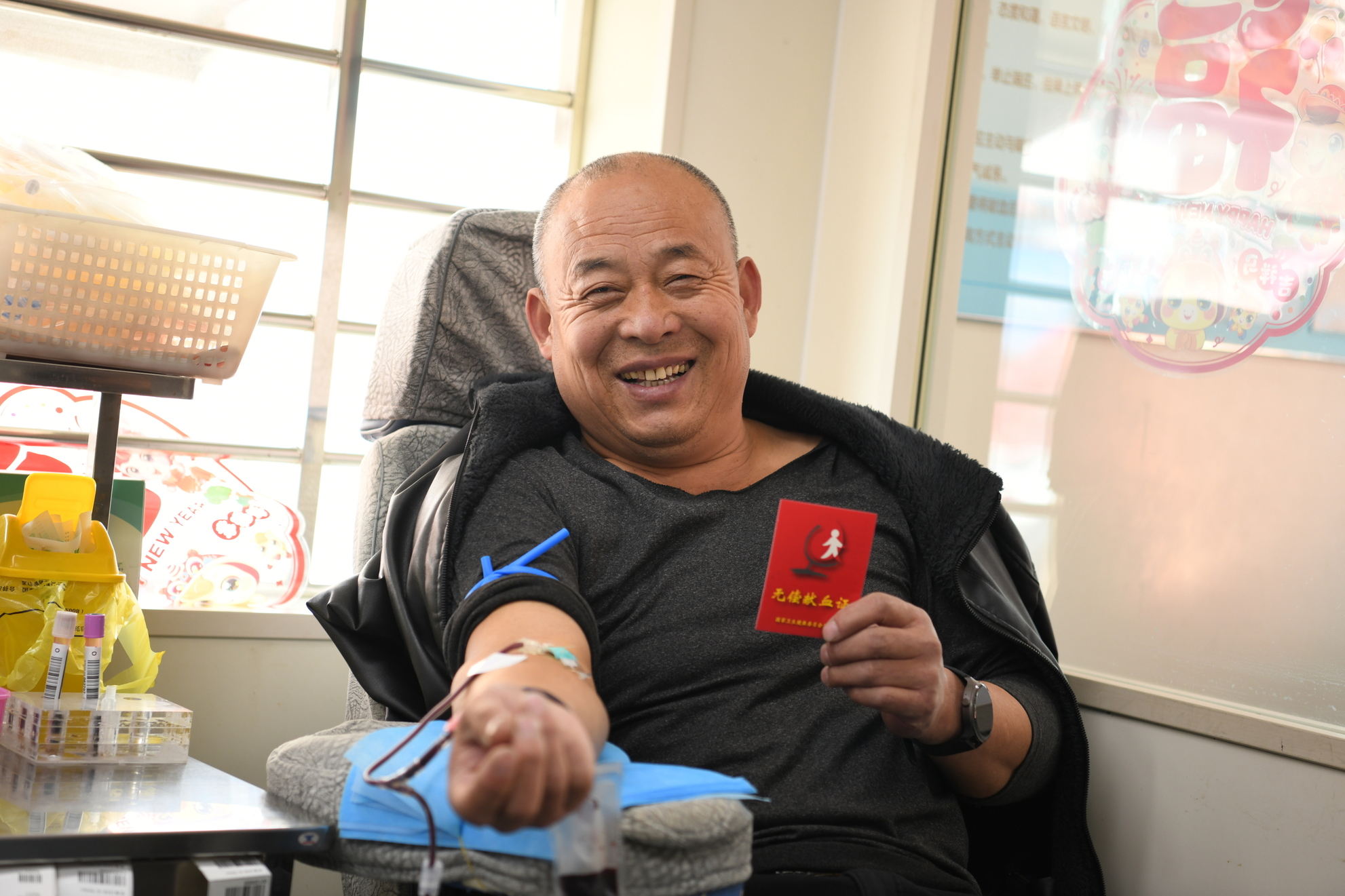 在轻松愉快的氛围中,王洪卫再次完成献血,累计献血量已达7600毫升。凭借这份持续的爱心,他荣获奉献奖银奖。他微笑着表示:“很荣幸能获得这份国家级荣誉,这是对献血者的肯定。我将继续传递善意,帮助更多需要的人。”