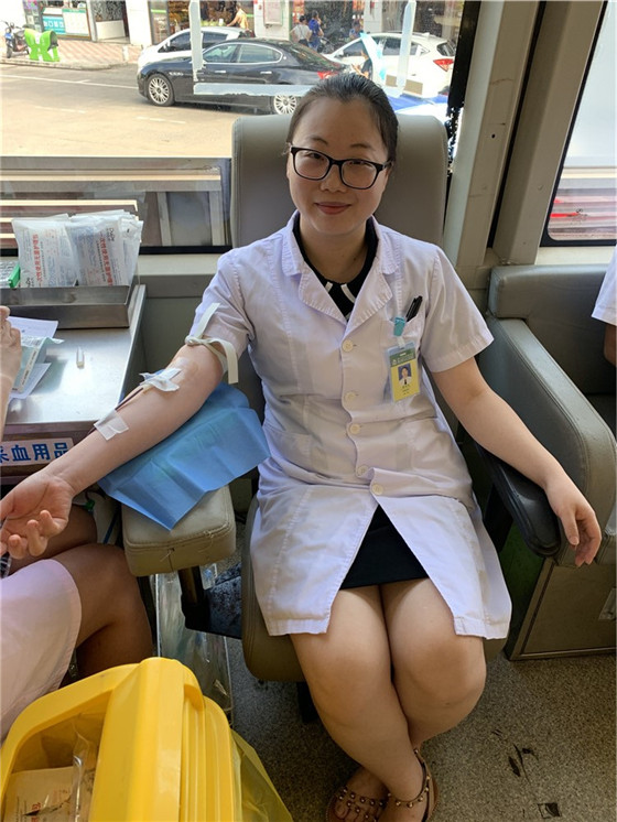 在冯主任的带领下,输血科、检验科符合献血条件的医务人员都参与到了当天的献血活动中。