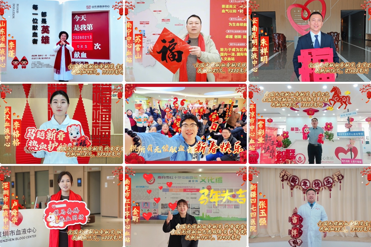 拜年啦——各地自愿无偿献血者祝您春节快乐!