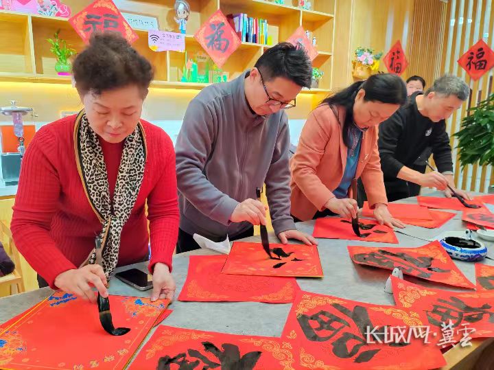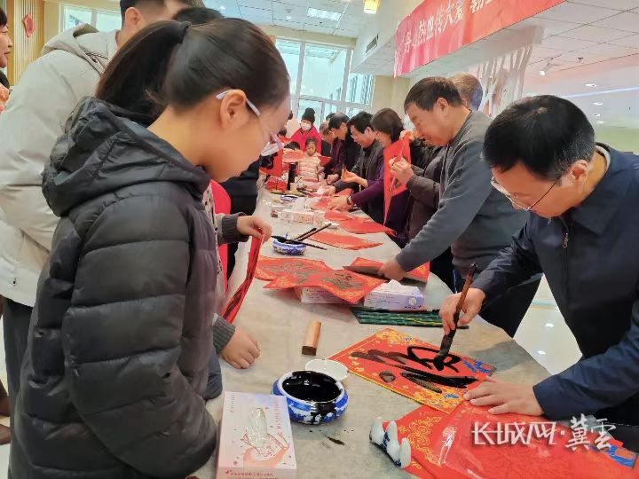 活动现场,来自保定市书法家艺术研究会的十余位书法家现场挥毫创作,用楷、行、草、隶、篆五体,书春联写福字,既有自主构思的吉祥春联,也有根据爱心人士需求定制的对联内容。这些作品被现场赠予前来无偿献血的爱心人士以及辛勤工作的血站工作人员,将“奉献”与“年味”巧妙联结。