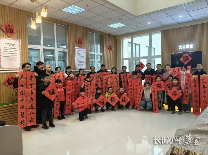 现场还专设书法展示与赠福专区。展区内,保定兰亭学子手书的百副春联整齐陈列,将免费赠予后续参与无偿献血的爱心人士;小书家们精心创作的福字,也作为专属赠礼,让无偿献血的善举增添文化温度与节日氛围。