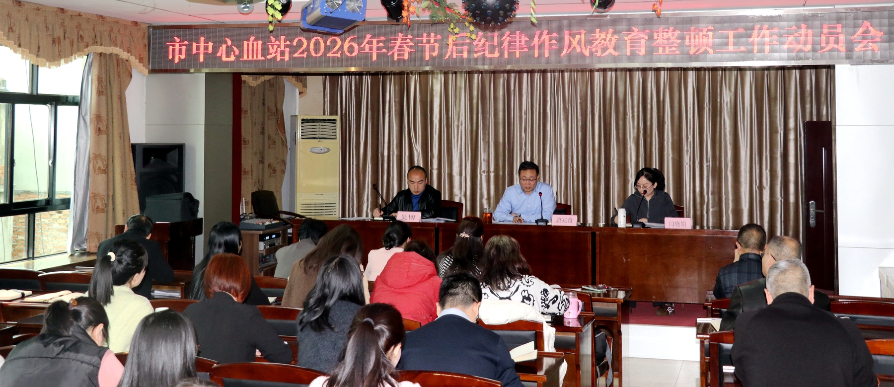 2月25日上午,商洛市中心血站召开2026年春节后纪律作风教育整顿工作动员会,对全站春节后纪律作风教育整顿工作进行全面动员部署。站党总支书记、站长唐兆奇作动员讲话,全体干部职工参加会议。