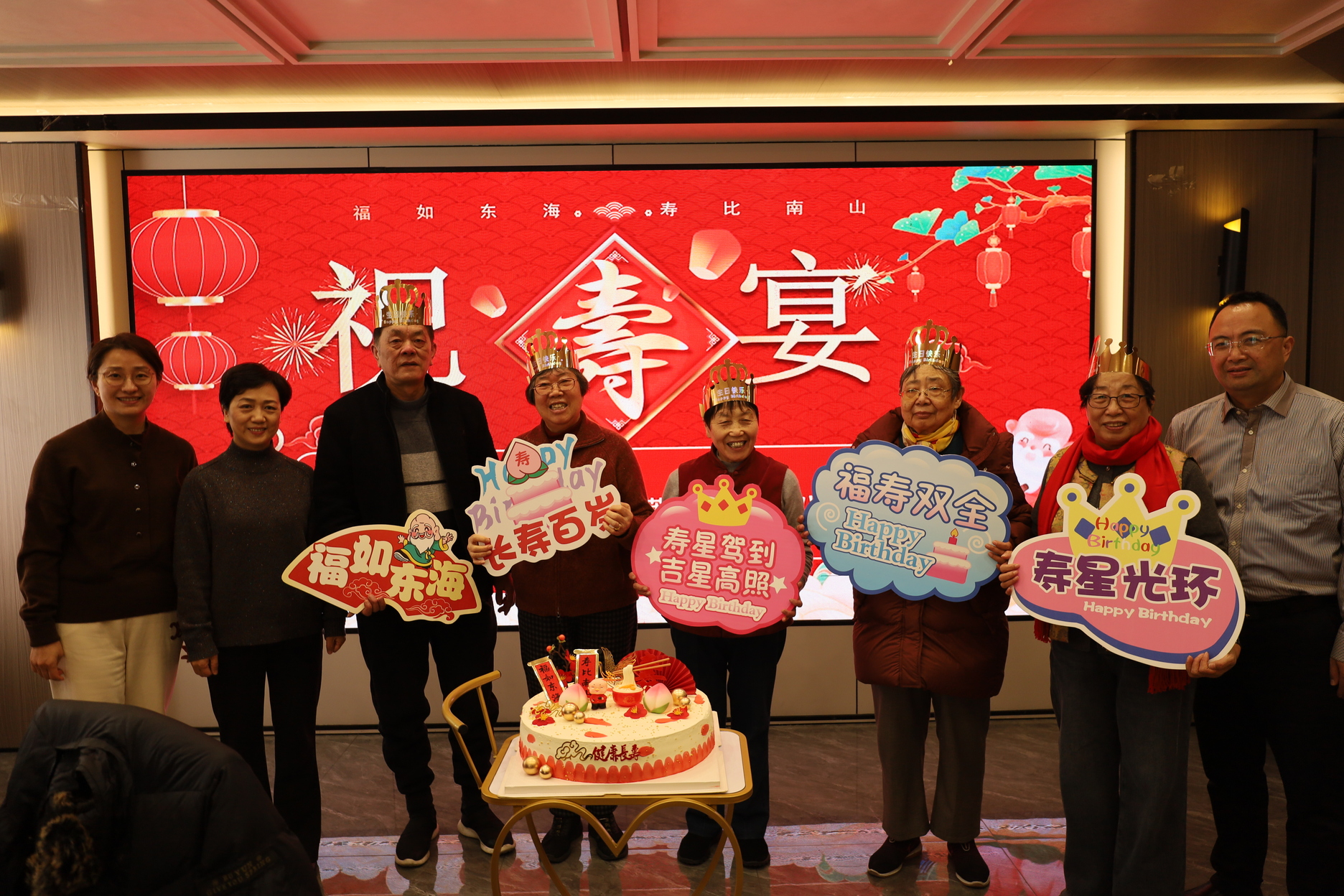 座谈会后,血站还为年届七十及八十周岁的老同志举办了集体祝寿会。