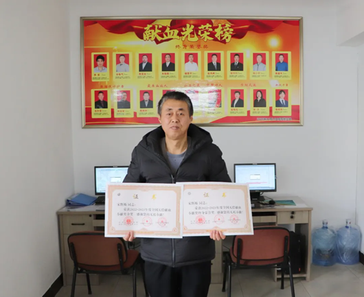 宋辉栋说:“我曾是一名军人,荣获全国无偿献血奉献奖终身荣誉奖,这是和平年代军人的最高荣誉。战争年代,老一辈抛头颅洒热血建立了新中国,和平年代我们更应热血救人奉献社会。”