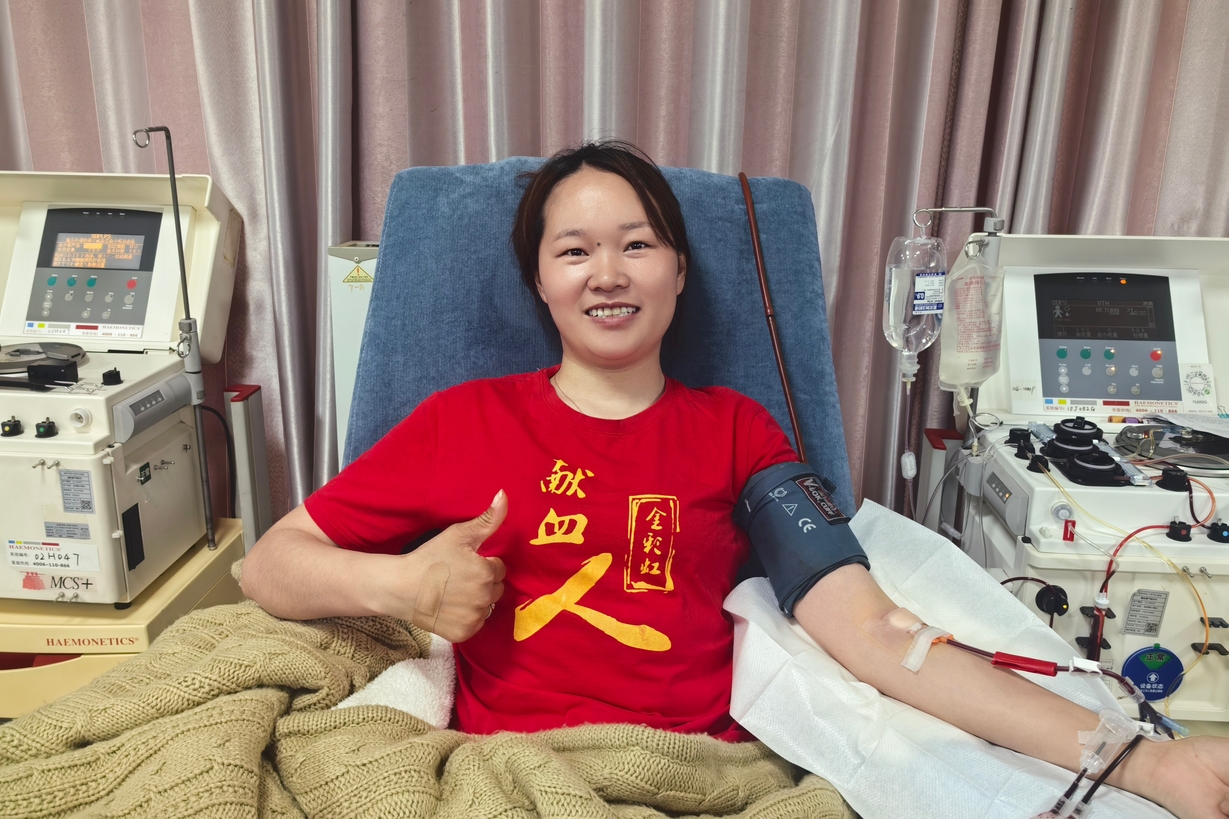 (李安桂在四川南充市中心血站捐献血小板)