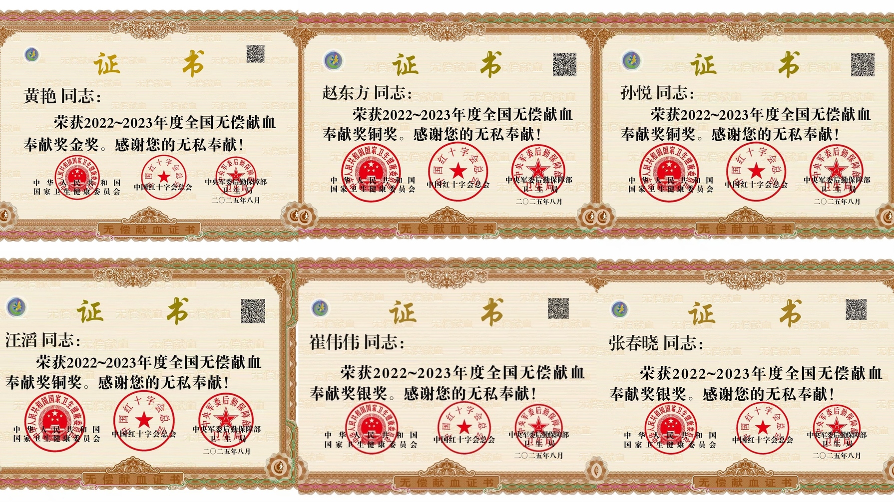 特别值得庆贺的是,在2022-2023年度全国无偿献血奉献奖名单中,连云港市中心血站多名员工光荣上榜!每一张证书背后,是数年甚至数十年的坚持。
