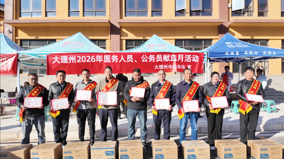 2026年2月13日,大理州中心血站携手漾濞县卫生健康局,在苍山脚下、漾水之滨举行2022-2023年度"全国无偿献血奉献奖"颁奖仪式。活动通过颁发荣誉证书、赠送宣传品等温情方式,向长期坚守在无偿献血一线的"热血英雄"们致以崇高敬意,用荣誉镌刻奉献,以温情回馈善举。