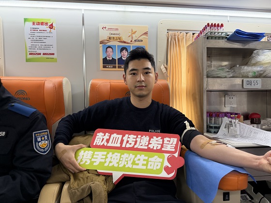 “这是我第二次献血,大学时在警校献了第一次,那时候还挺紧张的,今天反而特别放松。”临海市公安局有组织犯罪侦查大队的实习新警郭一轩撸着袖子笑着说。