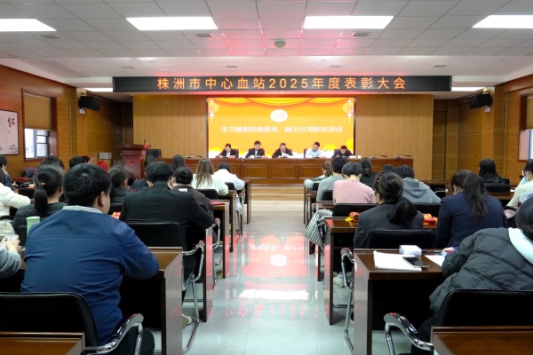 3月2日下午,株洲市中心血站2025年度表彰大会在七楼学术报告厅举行。市卫健委党委委员、副主任邓跃东出席会议并讲话,血站领导班子成员、全体职工及获奖代表参加会议。会议由血站党总支委员、副站长丁建军主持。