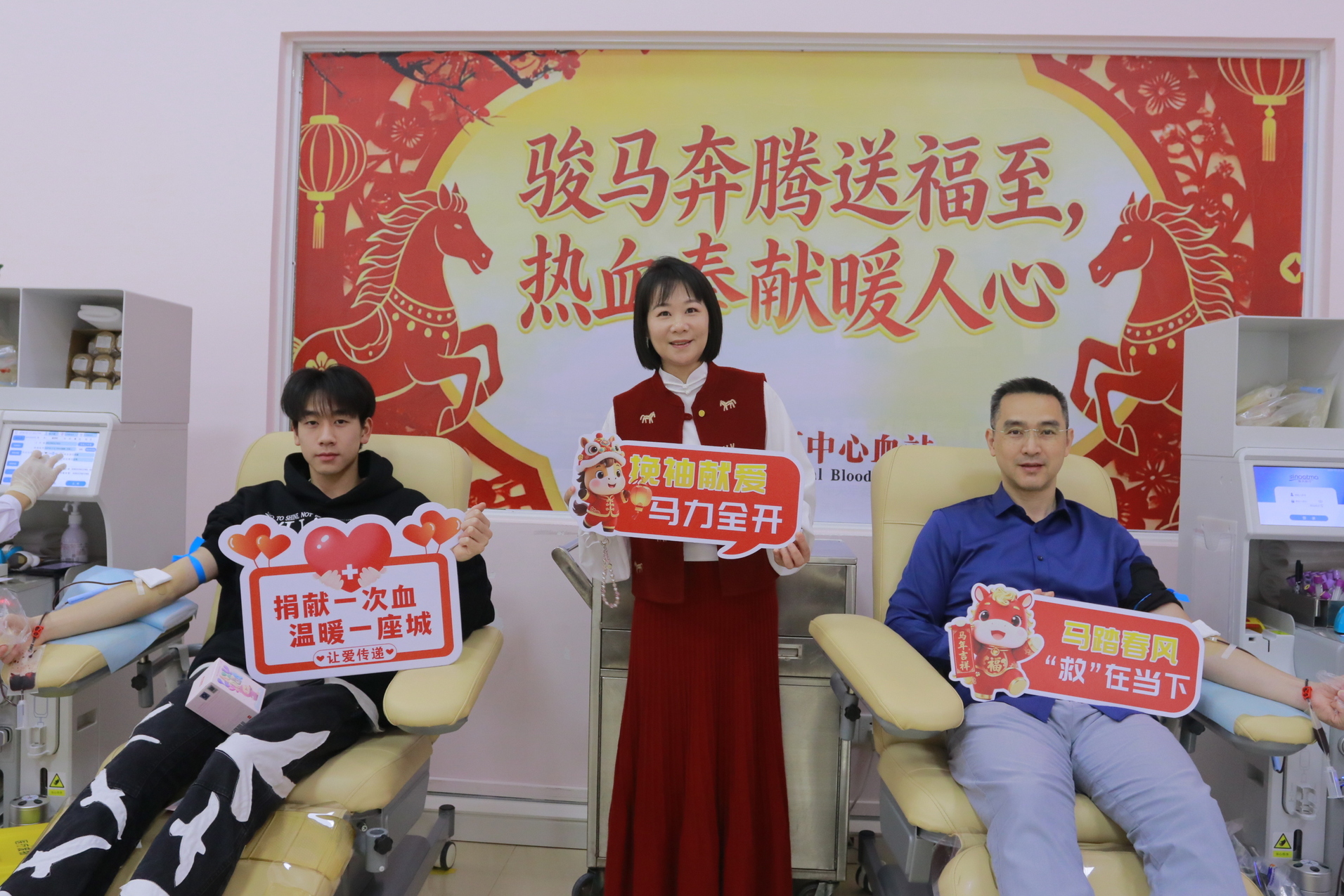慰问过后,夏传友站长以身作则、率先垂范,撸起袖子参与无偿献血,为“热血马年”增添了一抹温暖的中国红。在站长的带动下,血站同事和志愿者纷纷接力挽袖、踊跃参与,用实际行动诠释血站人的责任与担当,在春节的欢乐氛围中,以热血为炬、马力全开,守护生命续航。