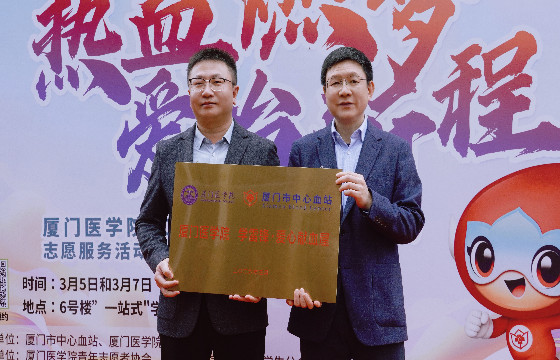 厦门医学院党委副书记林辉、集美区副区长黄灵敏、厦门市中心血站站长陈国伟、副站长曾晓新、集美区卫健局副局长方琳颖及厦门医学院各学院相关负责人、志愿者代表共同见证了这一光荣时刻。