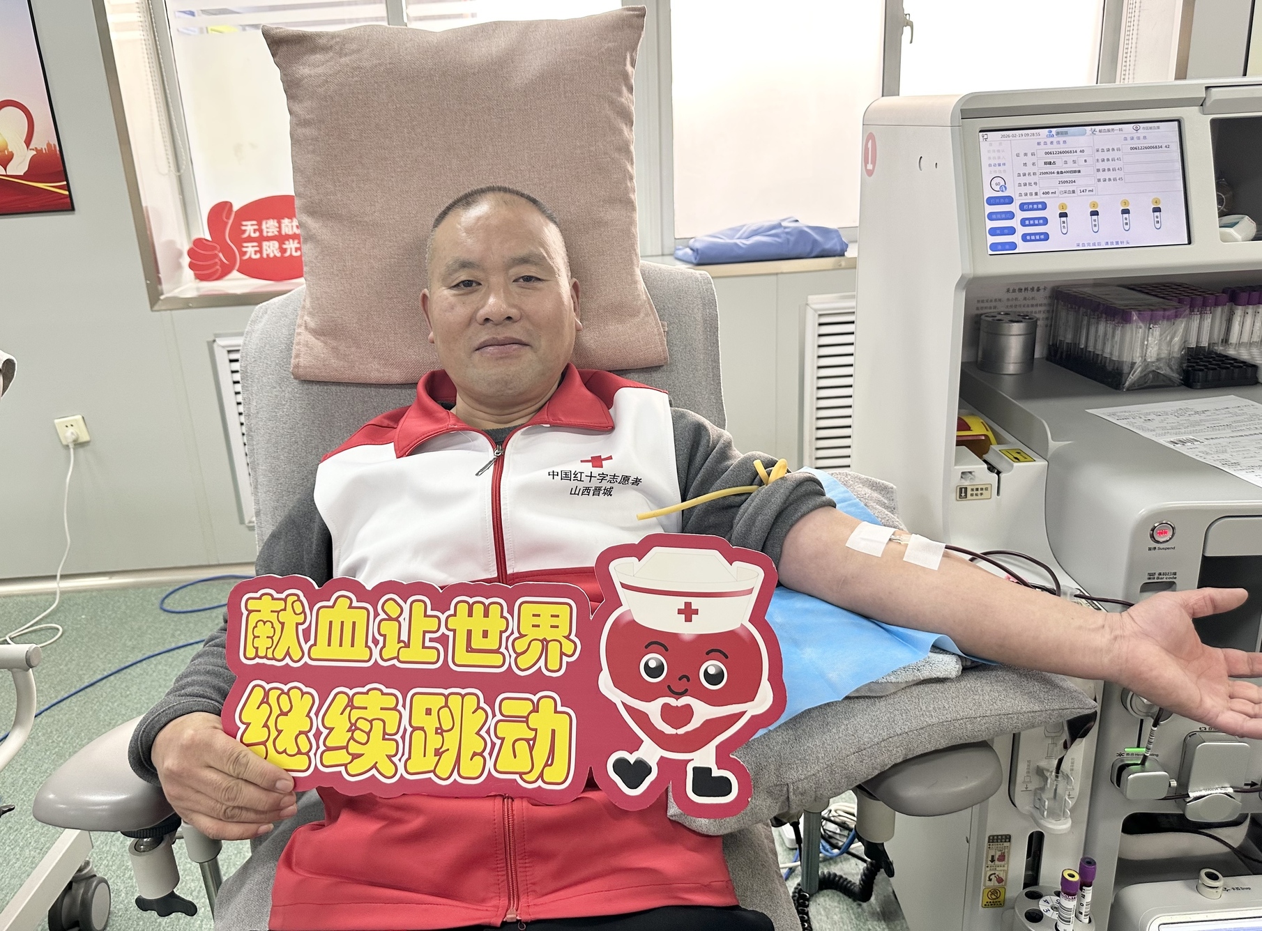 这是白靳飞第116次献血,“平时在北京工作,基本上每个月都坚持捐献血小板。出差的时候也不落下,太原、江苏、河北,都留下了我的献血足迹。”白靳飞笑着说,“对于献血者来说,爱心不分地域,只要时间到了,身体允许,随时随地奉献爱心。”