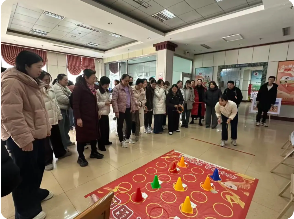 本次趣味运动会以“趣味+竞技”为核心,设置呼啦圈、跳绳、踢毽子、托球跑、搭桥过河、套圈等多项赛事。呼啦圈项目中,选手们轻盈扭动,展现出灵活的身姿,现场掌声与欢笑声此起彼伏;跳绳环节,选手们手脚协调,绳影翻飞间尽显活力与激情;踢毽子项目中,五彩的毽子在空中划出优美的弧线,选手们目光专注,动作敏捷;托球跑考验的是平衡与速度的完美结合,大家屏息凝神,争分夺秒地向终点冲刺;搭桥过河项目则充满智慧与协调,三块瑜伽砖在手脚间轮替,用巧思和速度完成挑战;套圈环节更是趣味十足,大家瞄准目标,精准投掷,每一次成功都引发阵阵欢呼。整场活动既充满竞技的紧张感,又洋溢着轻松愉快的节日氛围,充分展现了血站职工积极向上的精神风貌。
