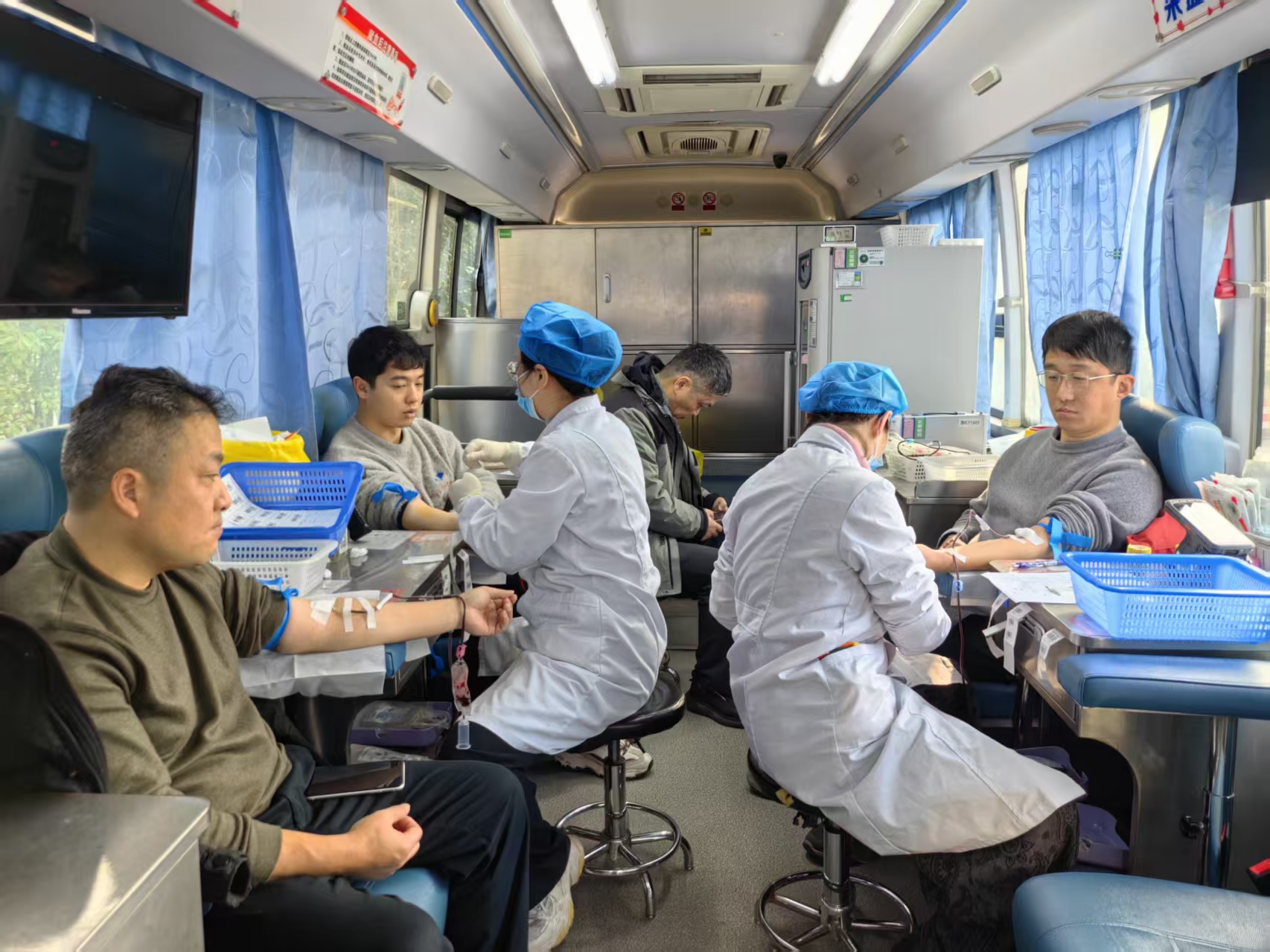 现场既有像张汉峰这样的“老将”,也有不少初次上阵的“新兵”。他们中有干部职工,也有来自一线的网约车司机和工程建设者。大家纷纷挽起衣袖,伸出手臂,让充满爱意的血液缓缓流入储血袋,汇聚成守护生命的温暖力量。