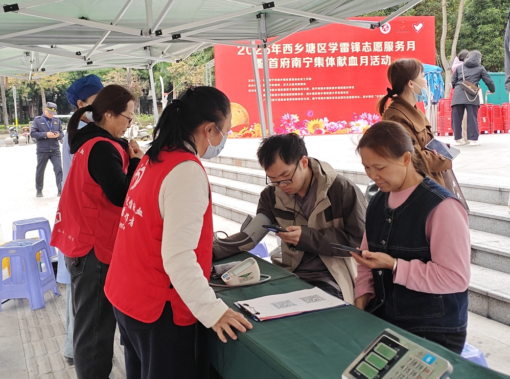 为弘扬“奉献、友爱、互助、进步”的志愿精神,保障首府临床用血需求,2026年3月10日,南宁中心血站联合西乡塘区开展无偿献血志愿服务活动。辖区志愿者、党员干部及爱心市民踊跃参与,以实际行动传递生命温情,为春日绿城注入温暖力量。