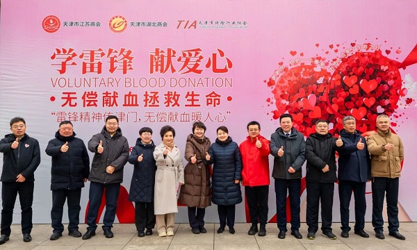 3月5日上午,“雷锋精神传津门,无偿献血暖人心”学雷锋献血活动在天津音乐厅前广场举行。天津市江苏商会、天津市湖北商会、天津市保险行业协会等爱心单位100余人参加。这是天津市江苏商会连续第二年牵头组织献血活动。天津市无偿献血形象大使、天津新闻广播主持人孙阳主持献血活动。共有69人成功献血88.5单位。无偿献血活动和平区副区长沙红,市工商联社会服务部部长,市光彩事业促进会副会长兼秘书长李有为,市血液中心党委副书记、主任高洁、副主任王霞,市红十字会赈济救护部副部长胡波和和平区工商联、和平区卫生健康委、和平区红十字会、小白楼街道办事处等领导及天津市江苏商会会长林谷春、天津市湖北商会秘书长贾淑艳、天津市保险行业协会副秘书长安兴伟等出席活动。