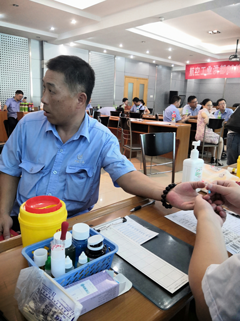 8月28日,洪都飞机总装厂与洪都设备能源中心联合开展职工无偿献血活动。活动现场,参与献血的同志在省血液中心的医务人员指导下认真填表、经过体检、抽血等步骤,最终32人成功献血8500毫升。