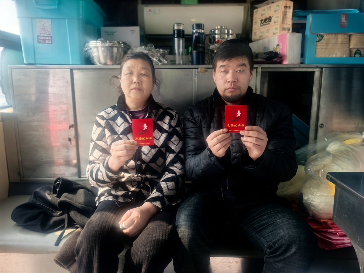 献血过程中,工作人员在了解到母子二人的暖心献血经历后,第一时间告知他们已满足山东省无偿献血荣誉证的办理条件,并贴心为母子二人申办荣誉卡,用细致周到的服务,向这份无私的大爱致敬,让无偿献血者感受到实实在在的温暖。