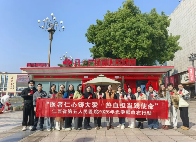 三月春风暖,奉献正当时。为传承和弘扬雷锋精神、志愿精神,展现医务工作者的社会责任与使命担当,3月12日上午,江西省第五人民医院工会和团总支组织职工前往八一广场江西省血液中心献血屋,开展了以“医者仁心铸大爱,热血担当践使命”为主题的2026年度无偿献血活动。活动由院党总支委员、副院长苗燕平带队。