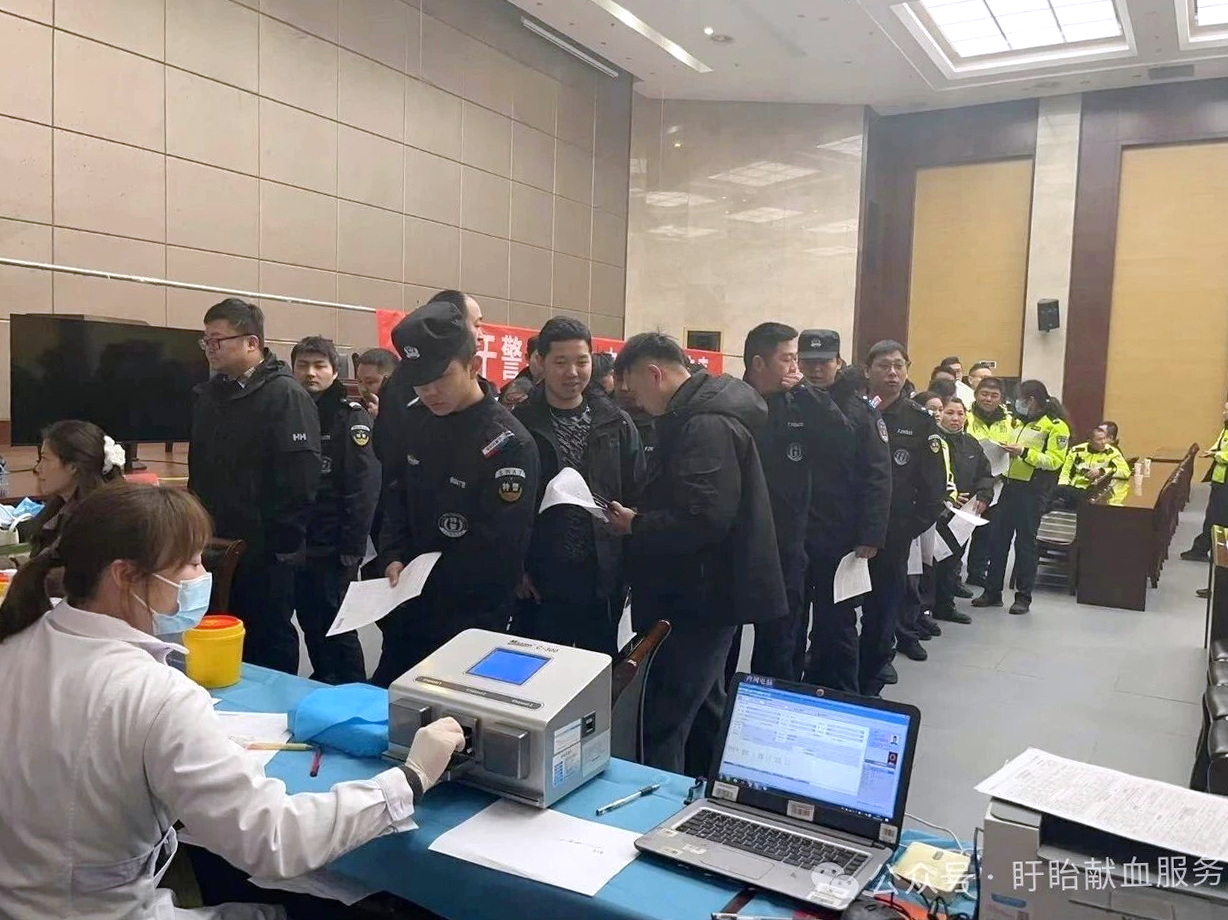 活动现场秩序井然、温情涌动。在医护人员引导下,参与献血的民辅警严格按照流程,有序完成信息登记、健康检查、血型初筛、血液采集等环节。队伍中,有连续多年献血的“老公安”,有刚入警不久的年轻干警,还有刚结束执勤、放弃休息赶来的一线民警。大家精神饱满、眼神坚定,挽起衣袖、伸出臂膀,殷红的血液汇入血袋,承载着盱眙公安对群众生命健康的守护与关爱。
