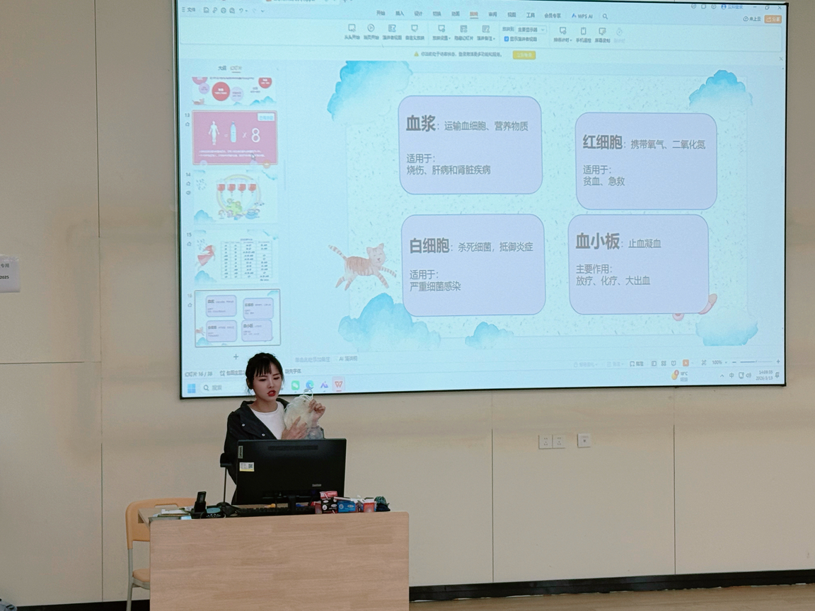 宣讲会设趣味问答互动环节,解答献血安全性、流程、健康影响等疑问,说明献血者权益保障、用血优惠及激励措施,列出献血基本条件,鼓励符合要求的同学参与,有不少同学当场测了血型。