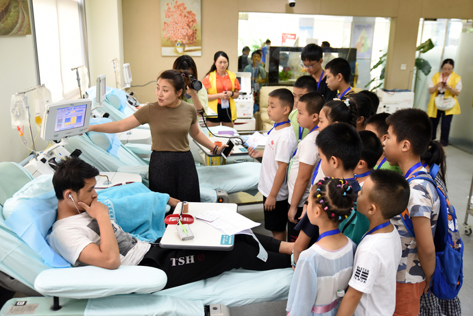 8月27日下午,成都市血液中心来了一群活泼可爱的、充满“为什么”的10后,他们先后去了献血大厅、献血前检测区、爱心献血采集室、储血供血科,所到之处,血液中心招募组的宣讲老师仔细介绍无偿献血相关的小知识,小朋友们听得可认真了。