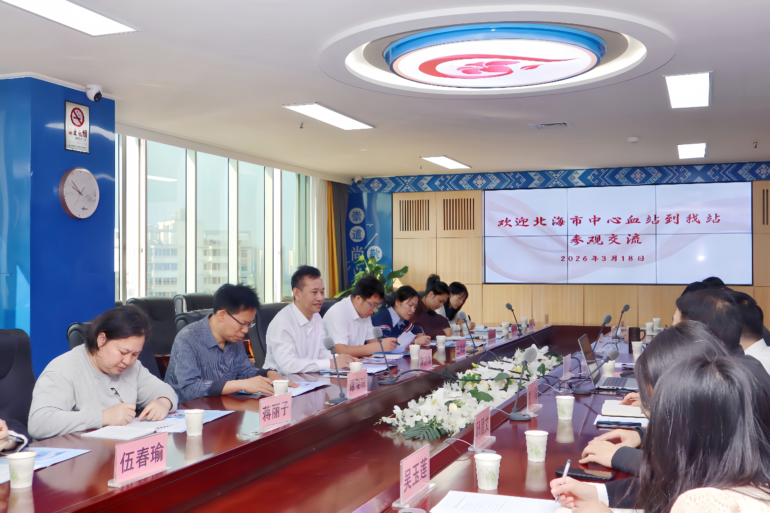 2026年3月18日,北海市中心血站党支部书记、站长陈忠如率该站业务骨干一行10人,赴南宁中心血站进行工作交流。南宁中心血站党委书记、站长苏常山等相关领导及业务科室负责人参加座谈。
