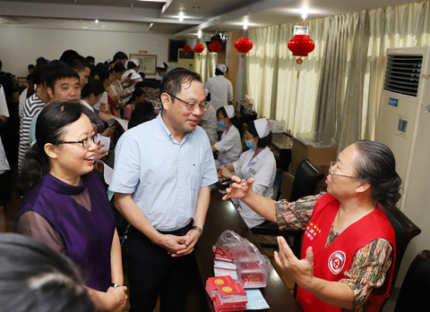 2019年8月28日,江西省儿童医院开展了爱心献血公益活动,百余儿科医护人员捋袖献血。江西省儿童院党委书记、副院长付超、江西省血液中心党委书记、副主任李秀珍来到现场,看望慰问正在献血的医护人员。
