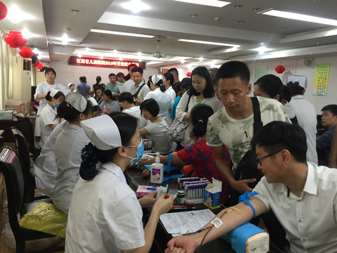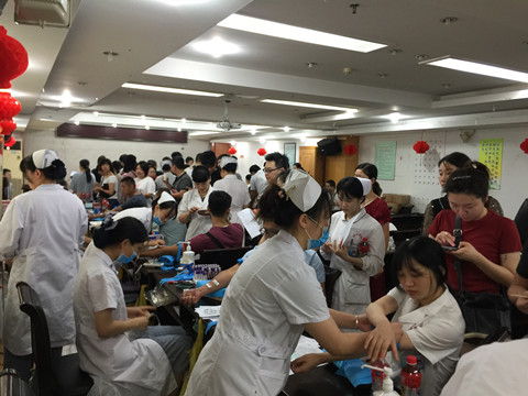献血人群中,有查房结束后匆匆赶到的科主任,有献完血马上回到岗位上的医护人员,有多次献血的老面孔,也有初次献血的年轻医护人员。活动现场不少病患家属也倍受感动,主动加入到奉献爱心的队伍中。
