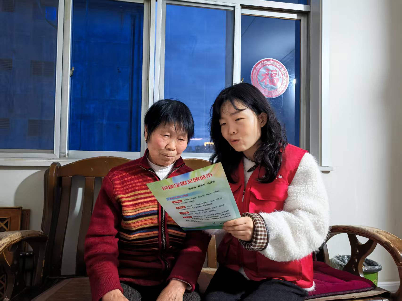 叩开一扇门,温暖一片心。敲门入户,既是创文宣传的窗口,更是倾听群众需求的通道。活动中,党员干部们向住户发放文明城市创建宣传彩页,细致讲解创建全国文明城市的重要意义、工作重点及家属院创文标准,现场指导居民填写创文调查问卷,并运用通俗易懂的语言普及垃圾分类、文明遛狗、楼道清整等知识,结合实际案例提醒居民养成文明习惯,没有生硬说教,只有贴心叮嘱,让创文理念深入人心。