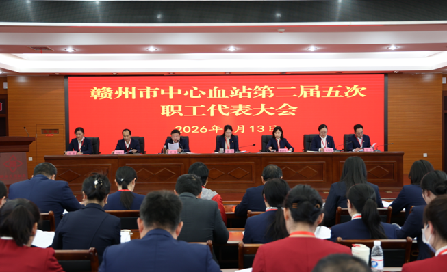 近日,赣州市中心血站第二届五次职工代表暨工会会员代表大会在十五楼会议室召开,站党支部书记、站长夏兰讲话,副站长赖建秀作2025年工作报告,副站长吴炜主持会议,全站近60名职工代表齐聚一堂,共商采供血事业发展大计,擘画2026年高质量发展新蓝图。