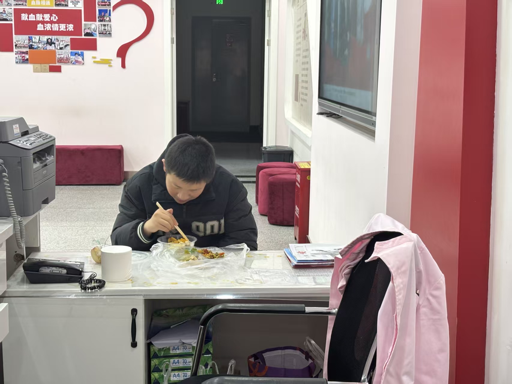 电话刚挂断没多久,儿子就背着书包兴冲冲地跑了进来。“爸爸妈妈,我来啦!”小男孩欢快地跑到父母身边,一家三口说说笑笑,温馨的画面让整个血站里的暖意又浓了几分。