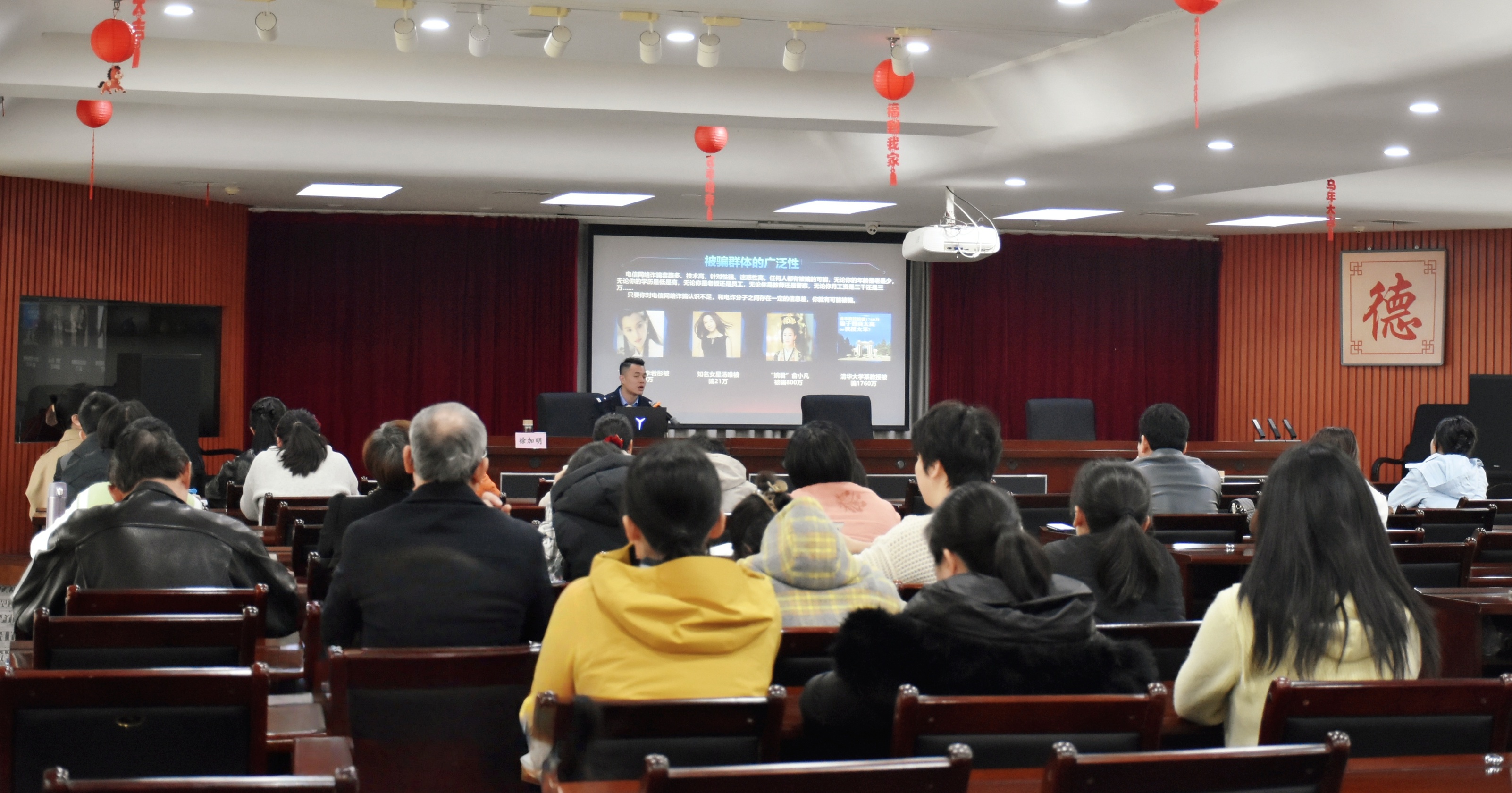 在培训会上,南昌市公安局刑侦支队电诈案件侦查大队的二级警长徐加明对对我们生活中、网络中的诈骗案例进行深入剖析。“网上投资理财需谨慎,所谓‘低投入高回报’切勿轻信。”“公安机关反诈电话96110,一定要接听,这是守住你的最后一道关口。”讲座中,徐警官围绕当前常见电信网络诈骗类型、典型作案手法、防范要点等内容展开,结合真实案例,重点讲解了刷单返利、虚假购物、冒充客服、冒充领导/ 熟人、贷款诈骗、钓鱼链接、虚假中奖等高发诈骗手段,深入剖析受骗原因,提醒大家时刻保持警惕,做到不轻信、不透露、不转账。