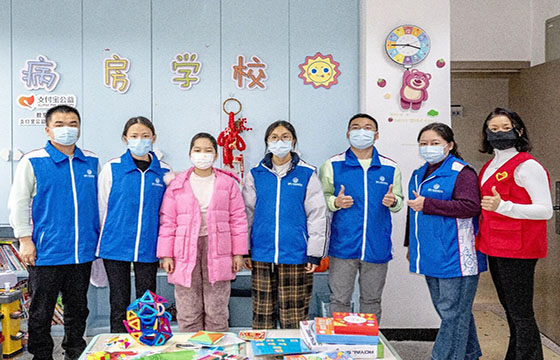 同日,以“春分传暖意,红花伴童心”为主题的志愿活动,在湖南省人民医院温情上演。宋令仪、吴福赐等8位志愿者心怀真诚,化身“暖心守护者”,为病房里的小朋友们送去专属欢乐。其中,志愿者陈武还特意为参与活动的小朋友们送上国防科大文创纪念,以这份特别的心意,温柔鼓励孩子们勇敢直面病痛、向阳生长。